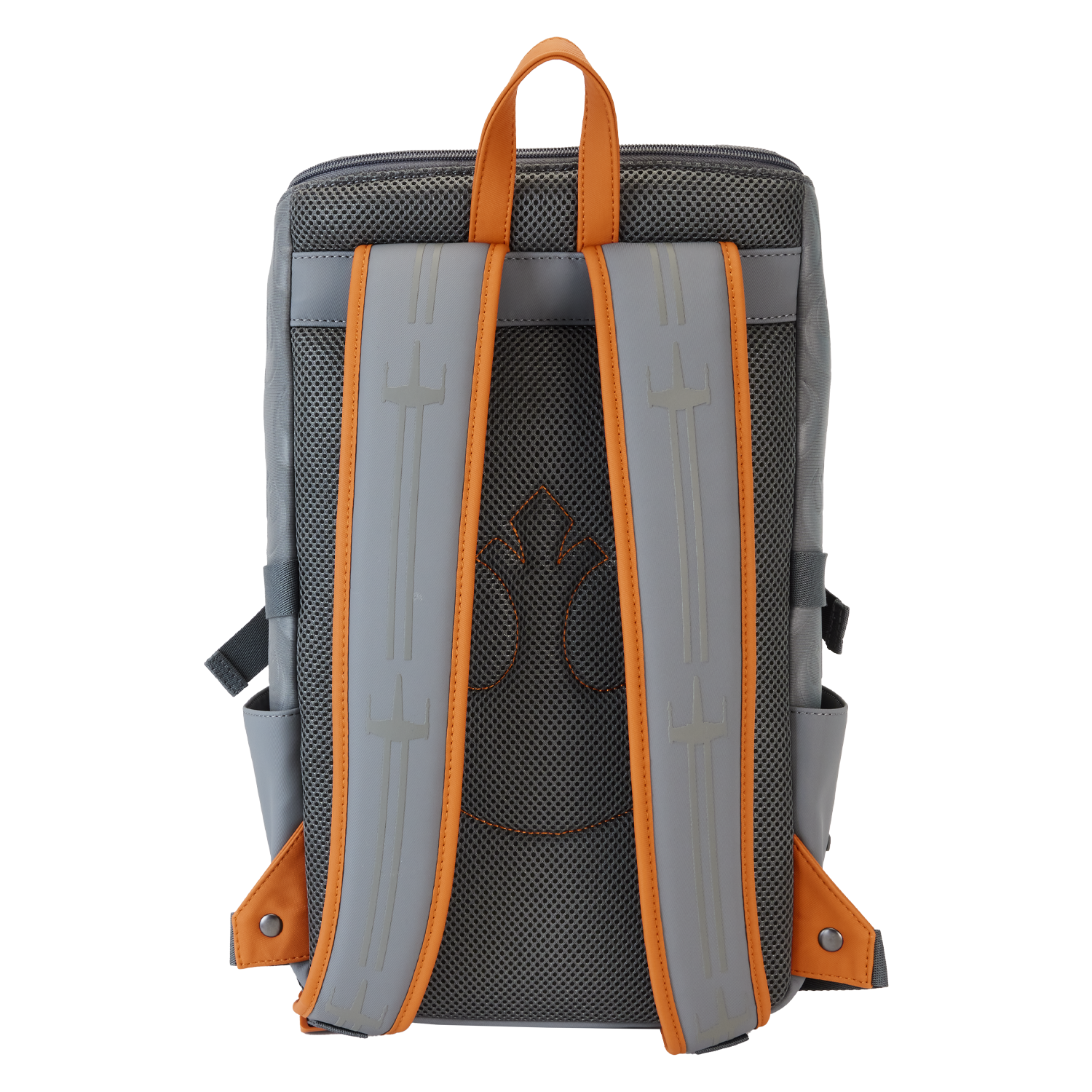 Show your allegiance in stealth style with our Loungefly COLLECTIV STAR WARS™ Rebel Alliance™ The MULTI-TASKR Full-Size Backpack. A discreet, debossed pattern of the Rebel Alliance symbol creates an elegant motif over the front of this backpack. The front panel also includes a waterproof zipper cover. Below, a roomy front pocket displays a silicone patch near the bottom, which includes the Rebel Alliance symbol. Adjustable side straps, with coordinating orange tabs, help secure and tighten the front zipped pocket. Metal rivets, on the straps, feature a subtle nod to the Rebel Alliance symbol as well. Side pockets allow you to secure smaller items for all your travels, and on one pocket, you’ll find a silicone patch of the Rebel X-Wing Pilot™ symbol. On the sturdy straps, Rebel Alliance X-Wing motifs continue along gray, raised silicone material. Mesh material, on the back, creates a new textural background for an elevated appearance of the Rebel Alliance symbol. Inside, you’ll find an elastic water bottle loop, key leash, and a laptop pocket for organizing and securing important items. Safely store your valuables for the day while remaining fashionably in character.