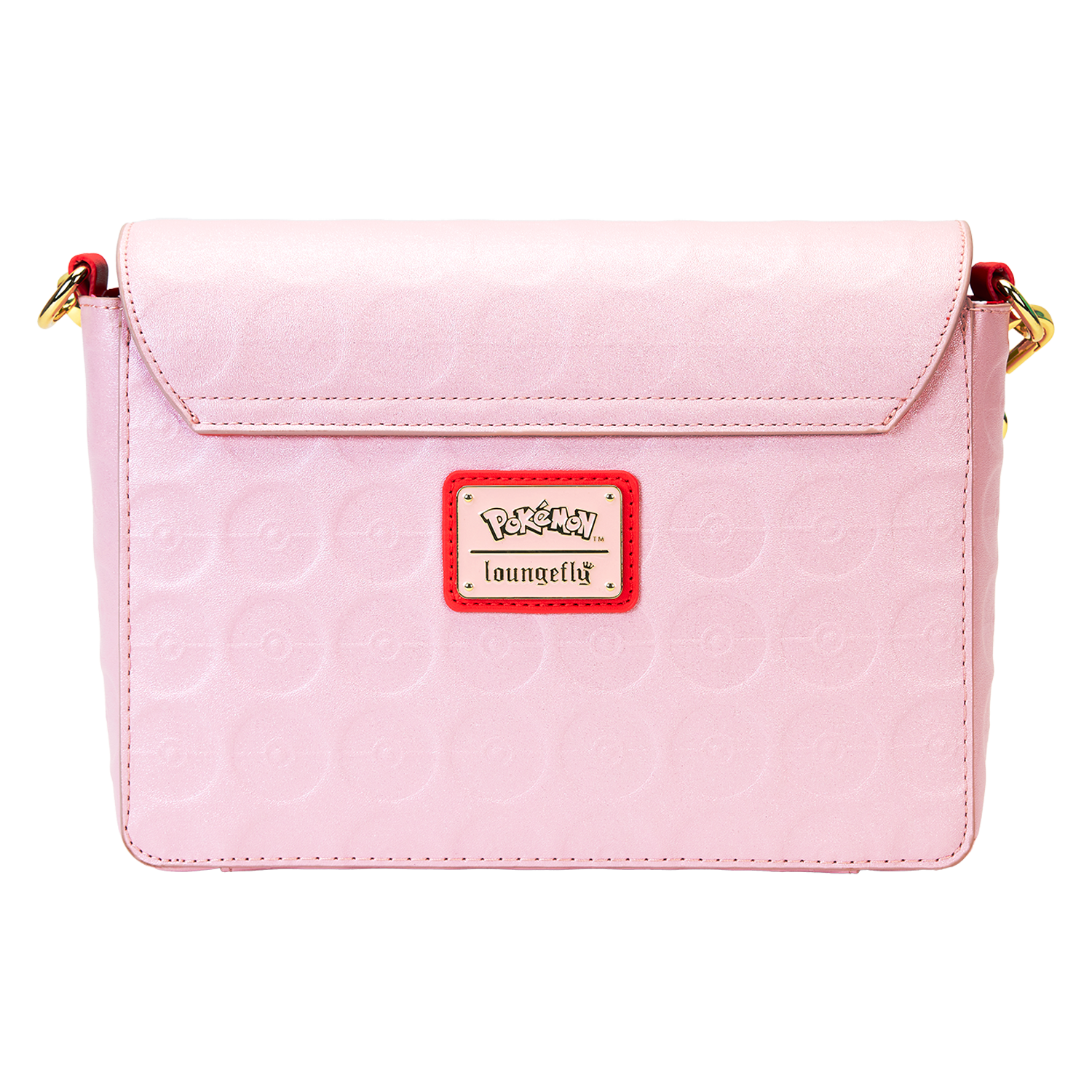Hey, fashionable Trainers! Keep your treasured Pokémon gear close with this exclusive crossbody bag. Pink glitter vegan leather adds extra sparkle, and a debossed Pokémon all-over pattern provides an elegant touch of fandom. On the front flap, you’ll find a die-cut window shape of a heart, with a print of a Pokémon ball peeking through. Lift the flap, and the entire ball is revealed. The detachable, adjustable strap carries a print that reads, “I Choose You!” Secure just what you need for the day and choose your own adventures in style.