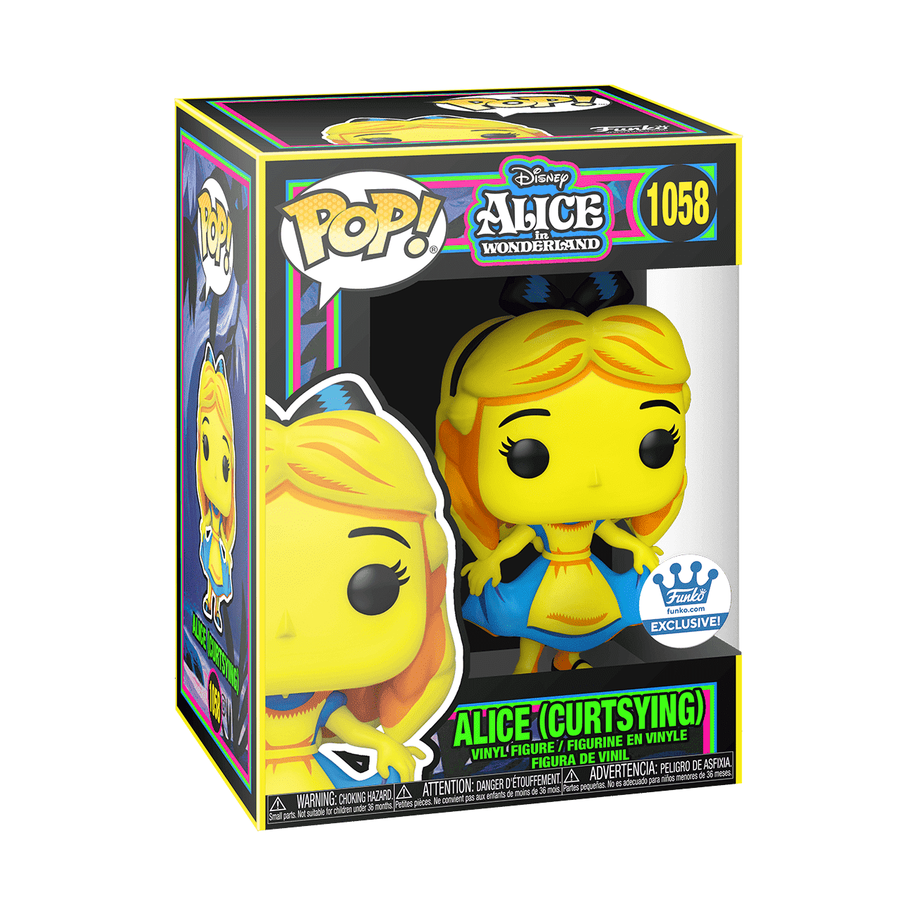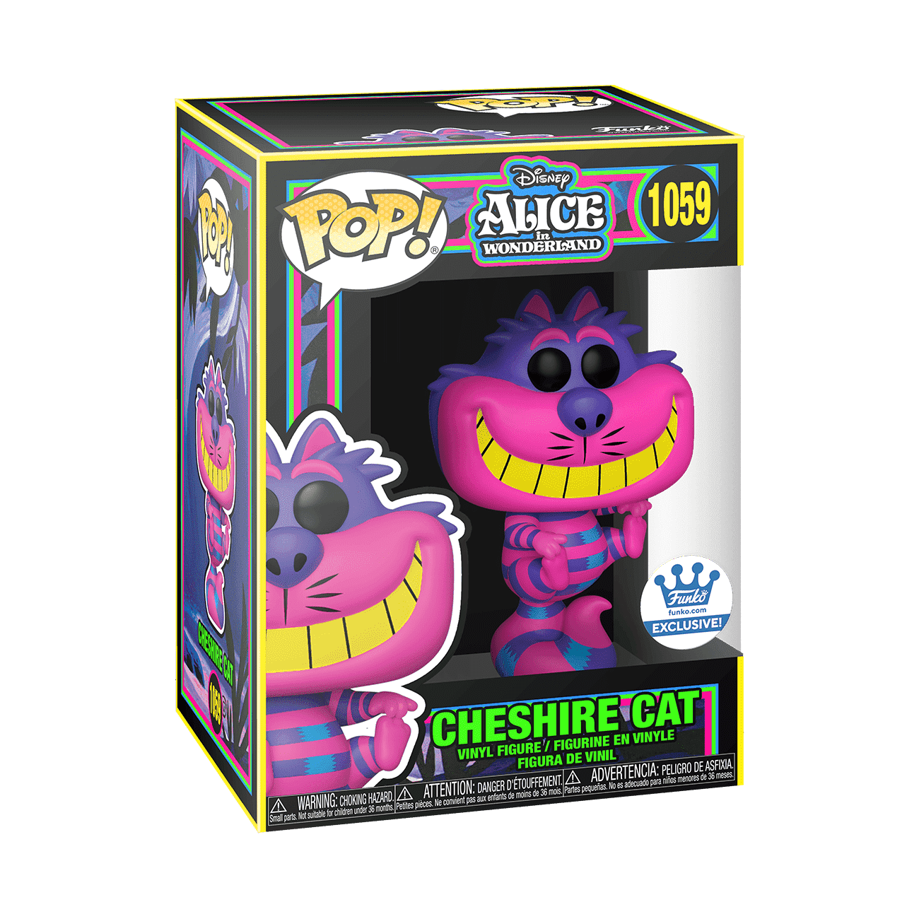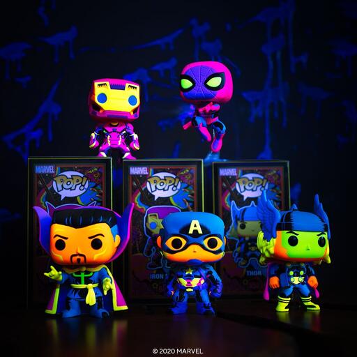 This variant type is newer to Funko collectibles. Black Light figures are designed and colored to be brightest and most eye-catching when placed under a black light. The Marvel Black Light collection is exclusive to Target and includes collectibles featuring Iron Man, Captain America, Thor, Doctor Strange, Spider-Man, and more. The Alice in Wonderland collection features black light Pop! Alice Curtsying and Pop! Cheshire Cat.