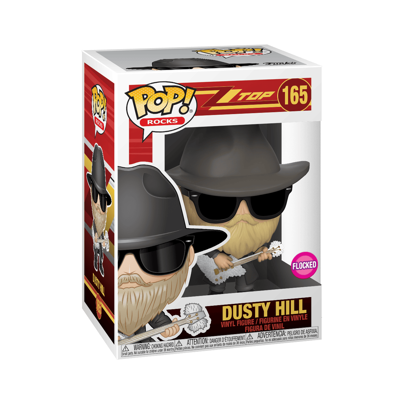 When a figure is "flocked" that means that instead of the usual smooth, vinyl texture, the figure has been coated with a soft, fuzzy texture. Check out flocked Pop! figures such as Dusty Hill and Billy Gibbons of the Pop! Music ZZ Top lineup, and Pop! Chewbacca.