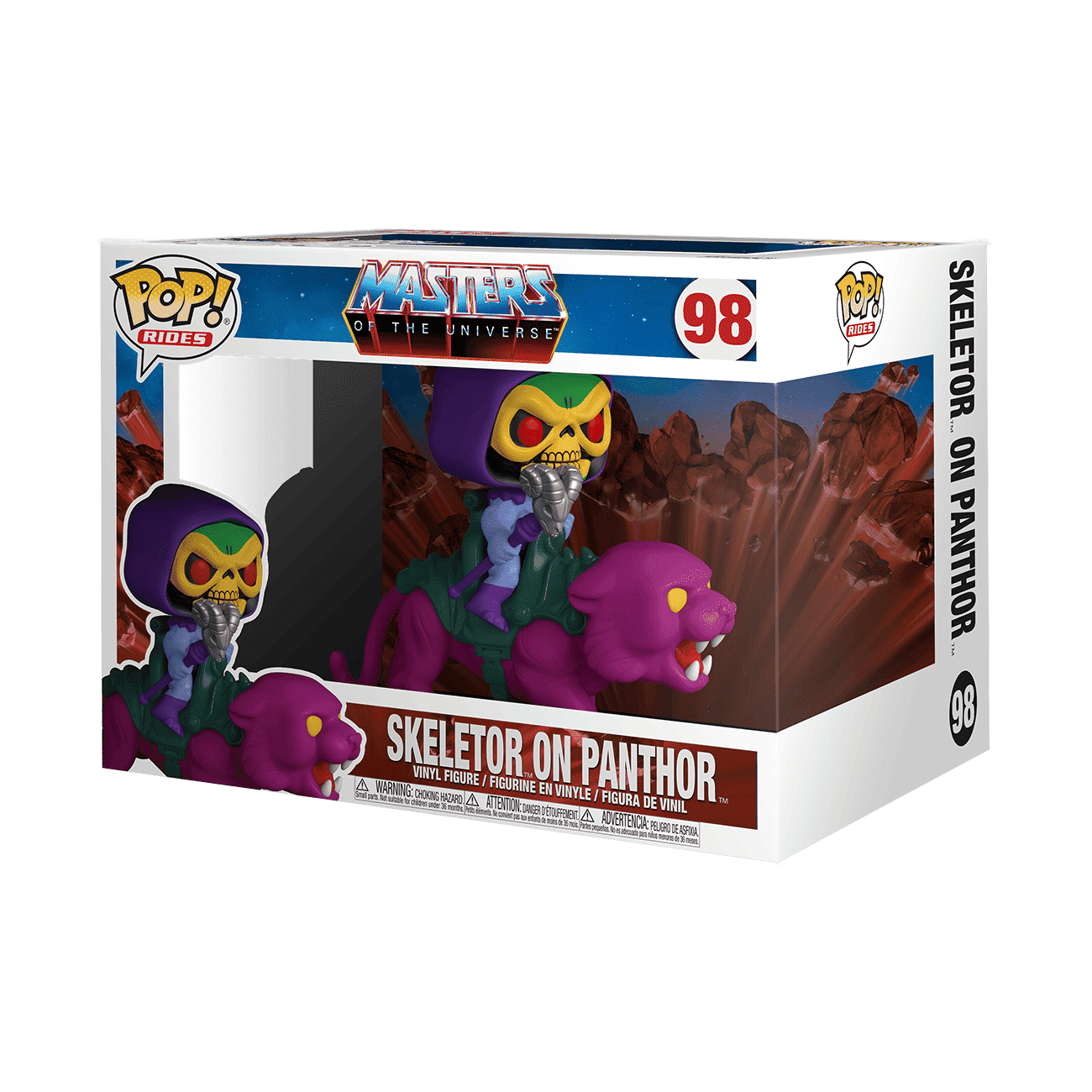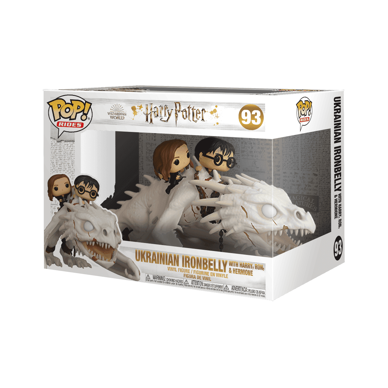 As their name suggests, Pop! Rides involve a character and some sort of vehicle or mode of transportation. There are three sizes of Pop! Rides including: standard Pop! Ride, Pop! Ride Deluxe, Pop! Trains, and Pop! Ride Super Deluxe. Pop! Ride Skeletor on Panthor, Pop! Ride Bandit with Trans Am, and Pop! Ride Ukrainian Ironbelly with Harry, Ron, and Hermione are good examples.