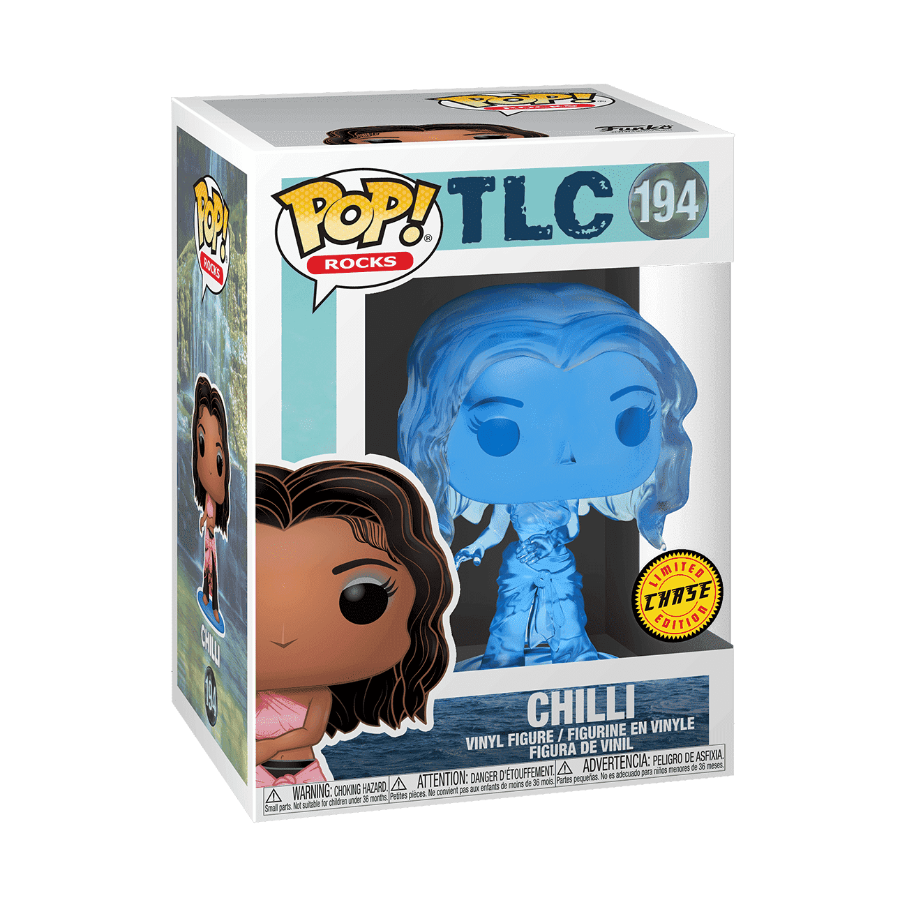 Some collections have characters that have a "chase" variant which is an alternate version of the character that is slightly different from the original. Sometimes the chase version is wearing an alternate outfit, others the chase could be glow-in-the-dark. There is usually a 1 in 6 chance of finding/collecting a chase variant of a figure. Some older collections had even slimmer odds of finding a chase. Some examples of figures that have a chase variant are Pop! Bo-Katan Kryze (The Manadolrian™ set), Pop! Chilli (Pop! Music TLC collection), and Pop! Slog with Grub (Funko's Wetmore Forest collection).